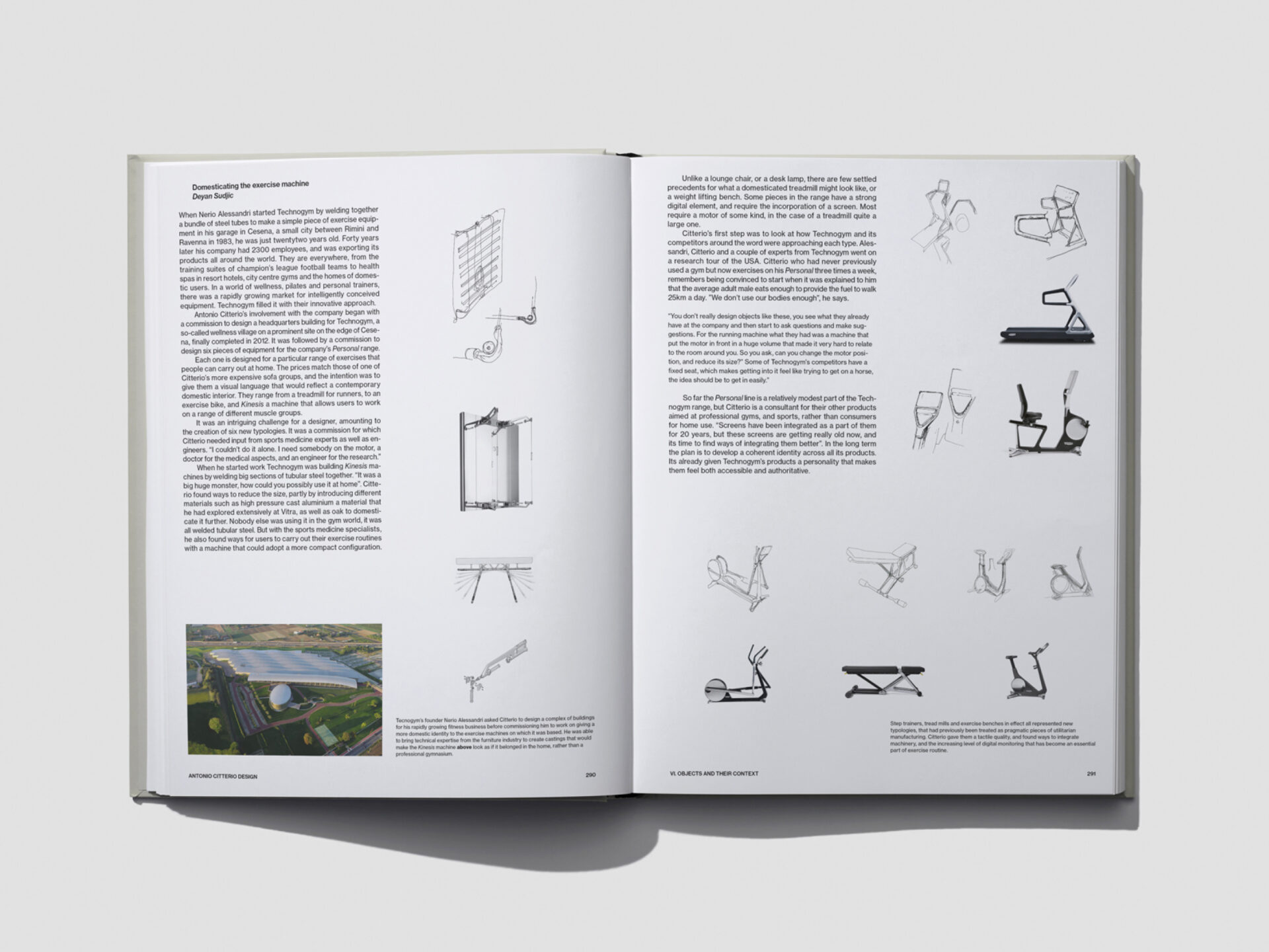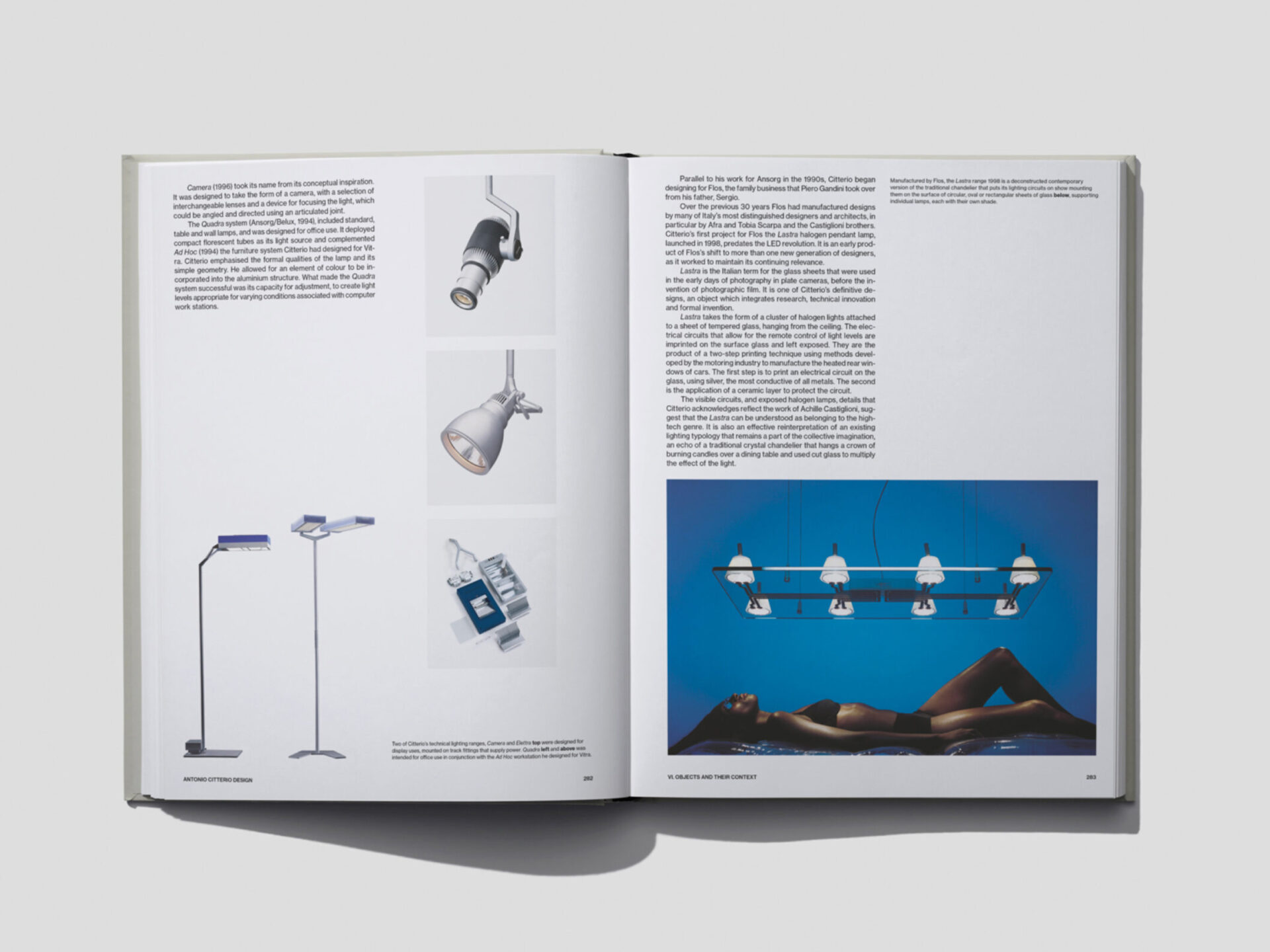 The book features a foreword and an introduction by architect and designer Andrea Branzi and by art critic Francesco Bonami, and its authors include writers Stefano Casciani, Francesca Picchi, and former director of London’s Design Museum, Deyan Sudjic (also the book’s editor). The writing offers a comprehensive and detailed account of works that, in a 50-year career of more than 600 products in a wide range of fields, share a stylistic code that combines a discreet and elegant modernity with a meticulous attention to detail.