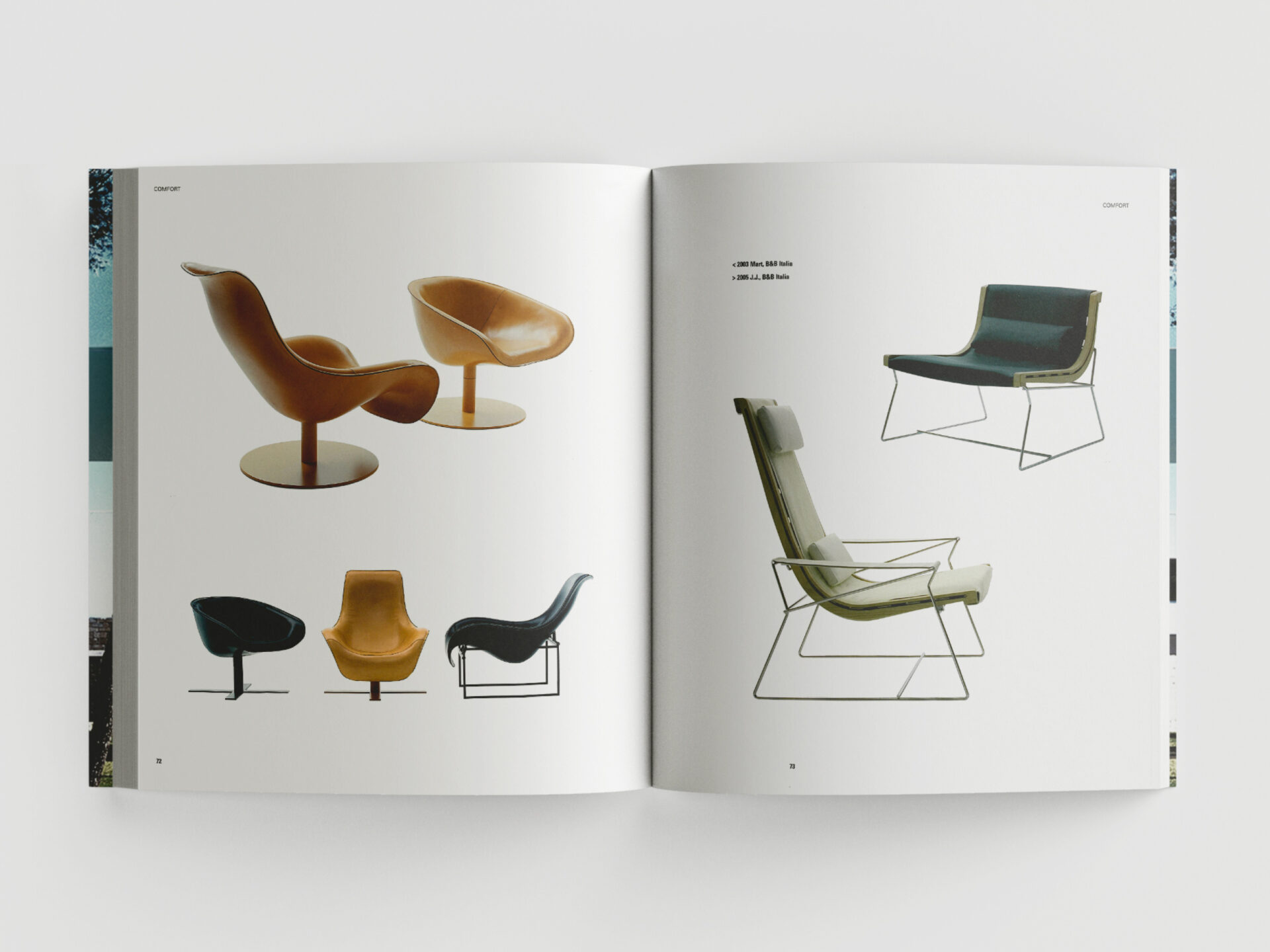 Divided into seven chapters, the book traces Citterio’s creations from the 1970s and ‘80s with the Baia sofa and the Diesis series, both designed with Paolo Nava, that led to a decades-long collaboration with B&B Italia, all the way to the years of partnering with Flexform, Arclinea, Vitra, Flos, Axor, and up until the most recent works with Cassina and Knoll.