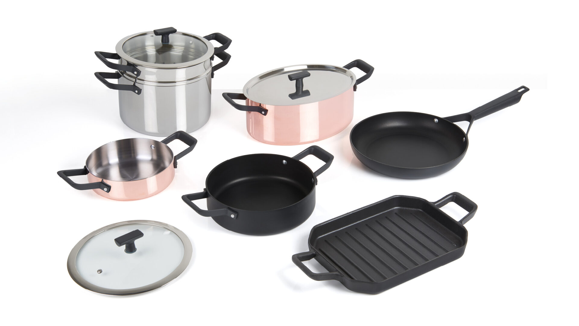 Cookware collection developed with TVS, combining aluminium, copper, stainless steel, and cast iron according to function. Each material is selected for its thermal and mechanical qualities, translating culinary precision and domestic ritual into an integrated design system.