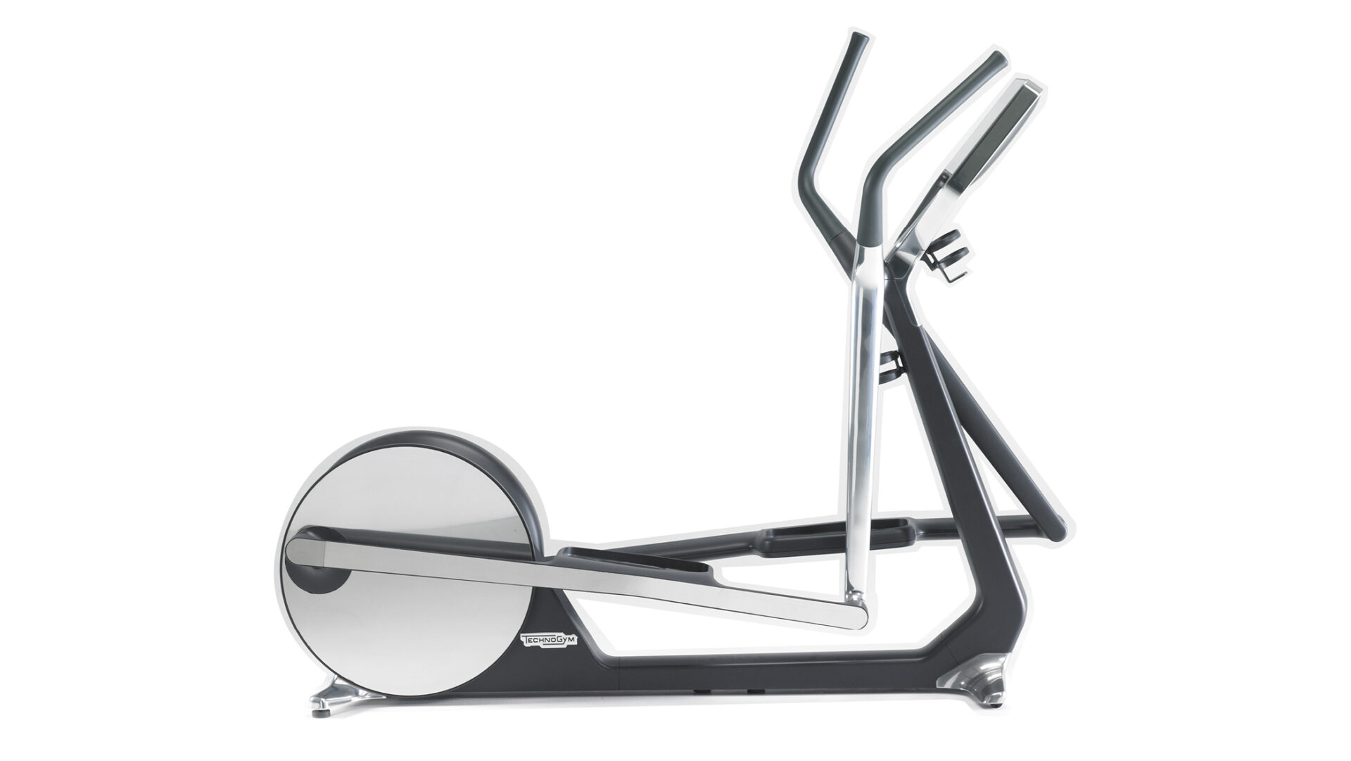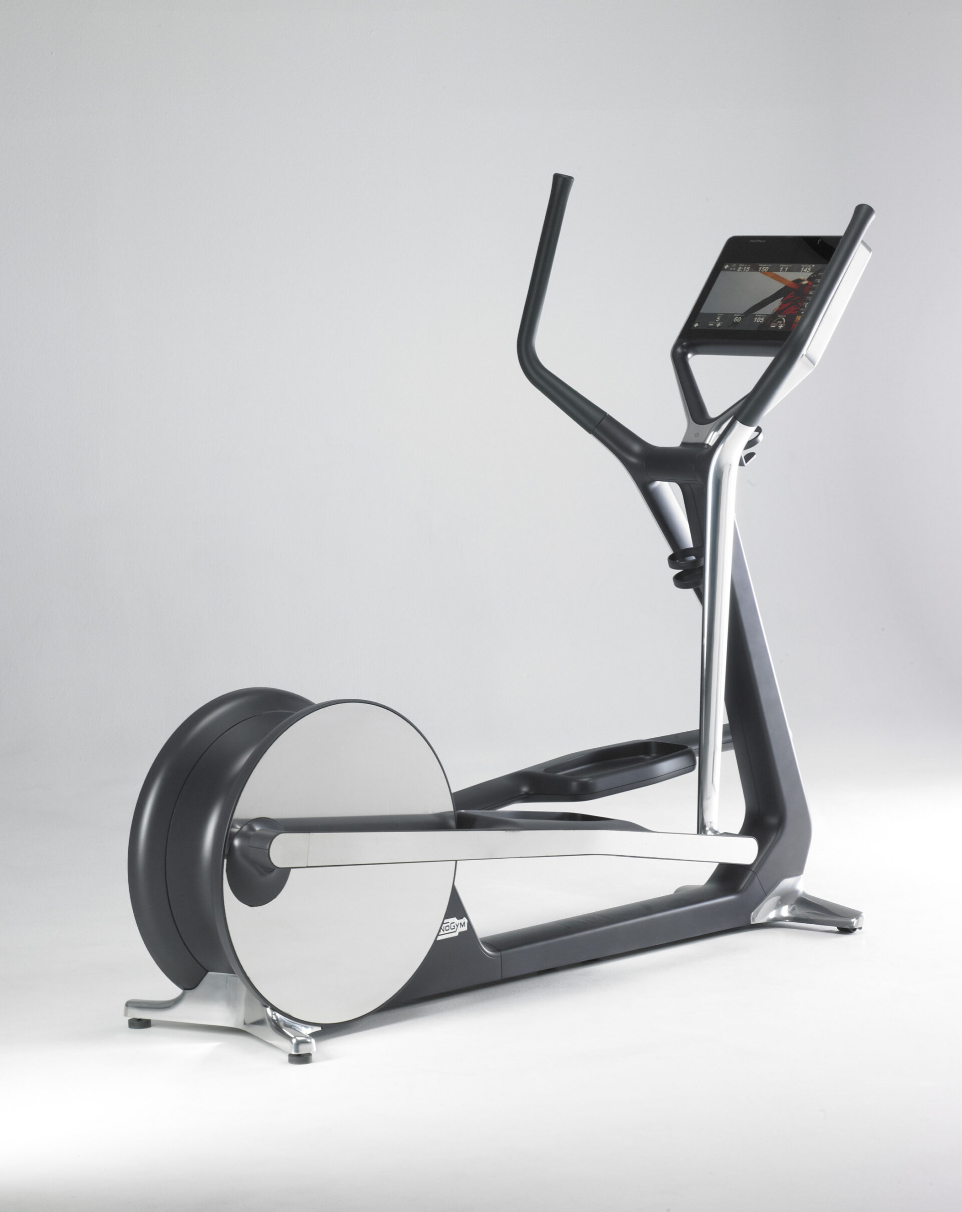 Elliptical trainer in die-cast aluminium, part of the Personal line for Technogym. Reconceived from an existing machine, it introduces a new motion mechanism and a compact body with integrated display.