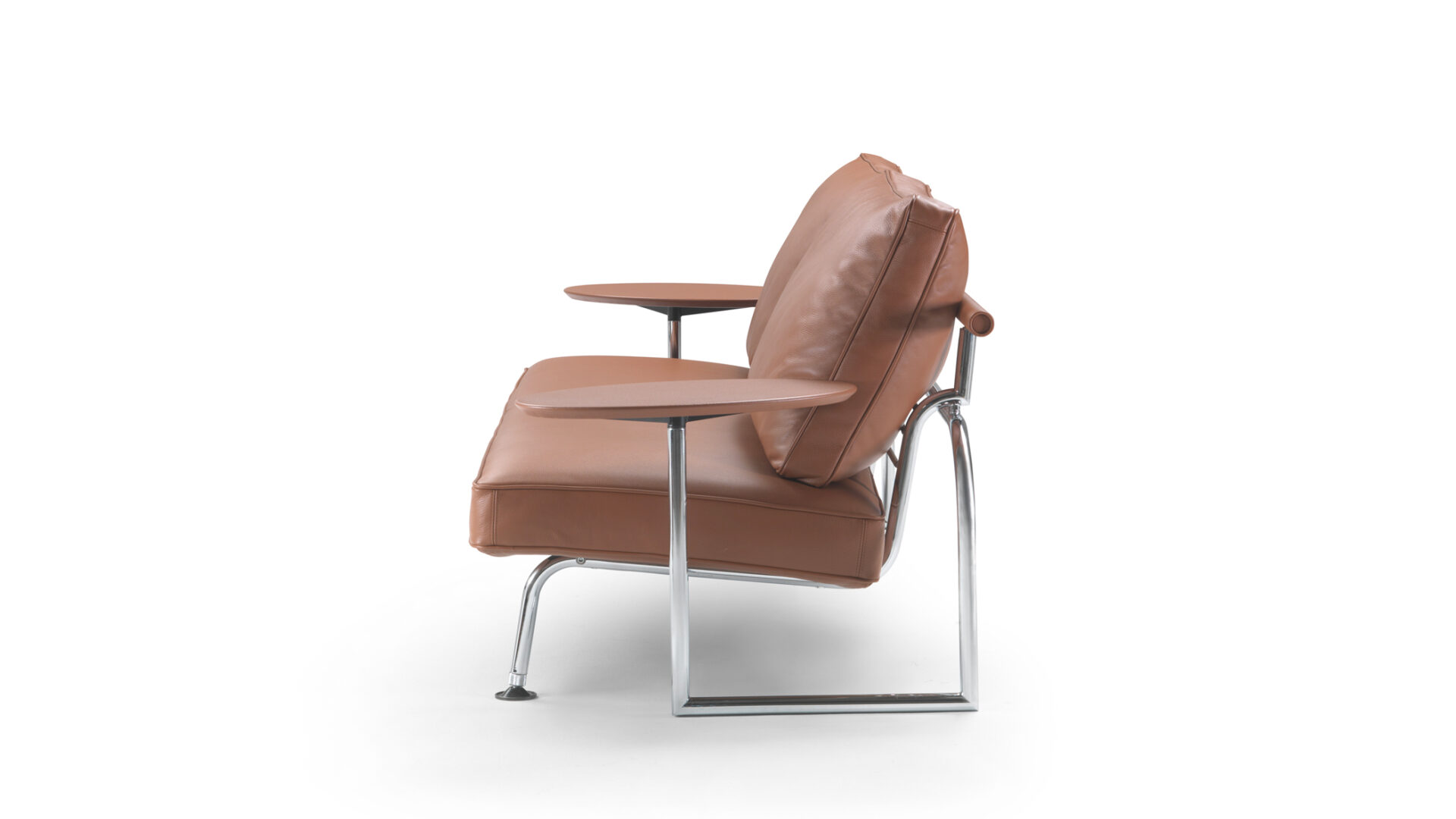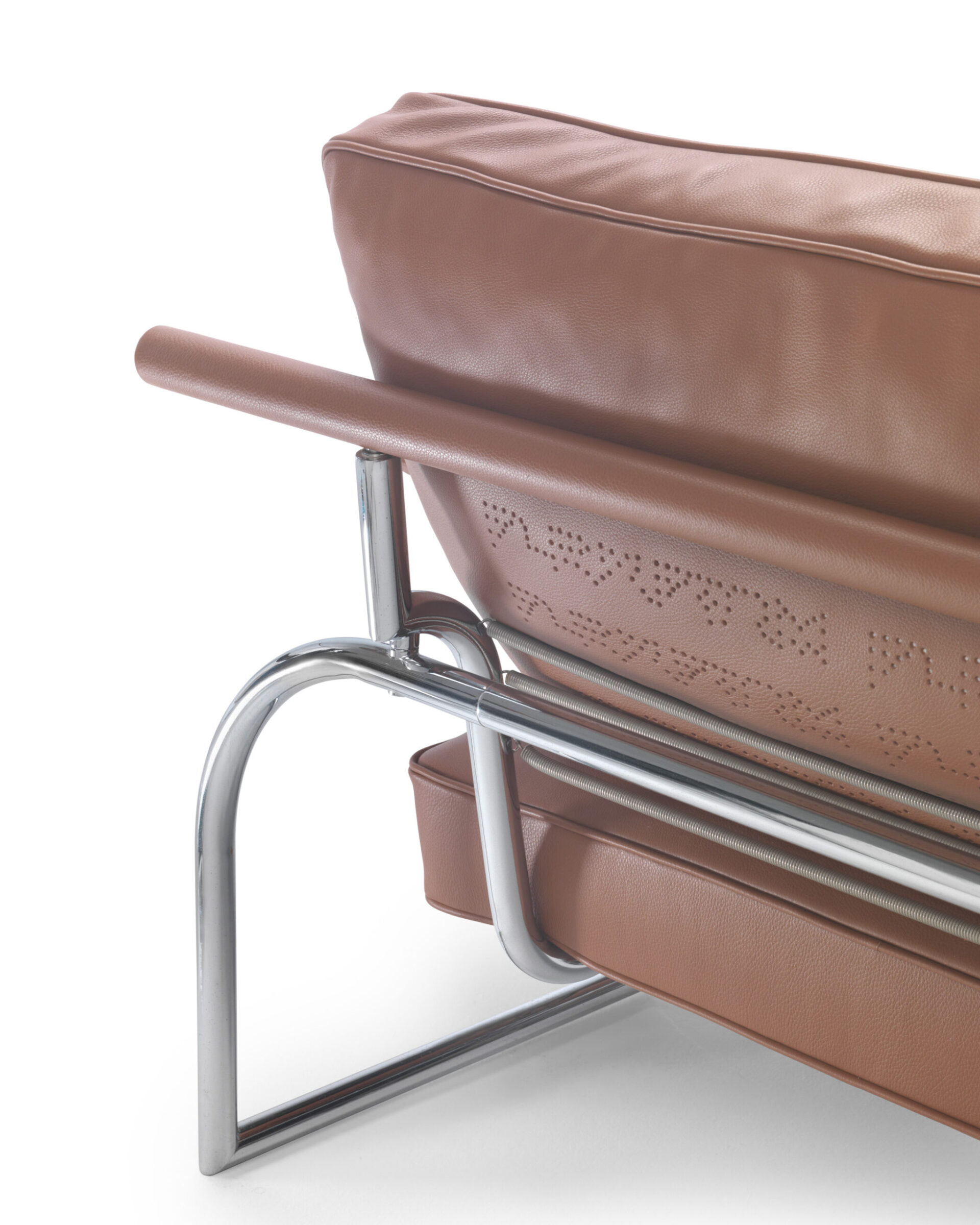 Ginger distils Bauhaus and Rationalist clarity into lightweight, tubular-metal seating. The structure stays legible, echoing René Herbst’s welded forty-five-degree joints rather than bent tubes, and carries a bourgeois modern elegance where nothing is superfluous. Conceived amid the exuberance of the 1980s, it argues for essentiality and endurance. Drawn and redrawn across sketchbooks, it reflects an almost obsessive search for proportion and poise, and a dialogue with the Milanese Rationalist lineage of Asnago, Vender, and Mucchi.