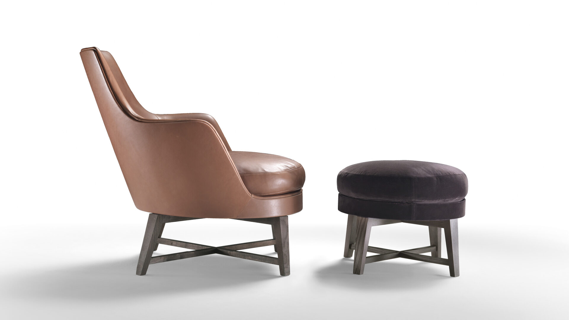 Collection of sofas and armchairs built around a structural polyurethane shell paired with soft, down-filled cushions. The contrast between the rigid frame and upholstered volumes defines a family of enveloping, tailored pieces suited to both residential and hospitality environments.