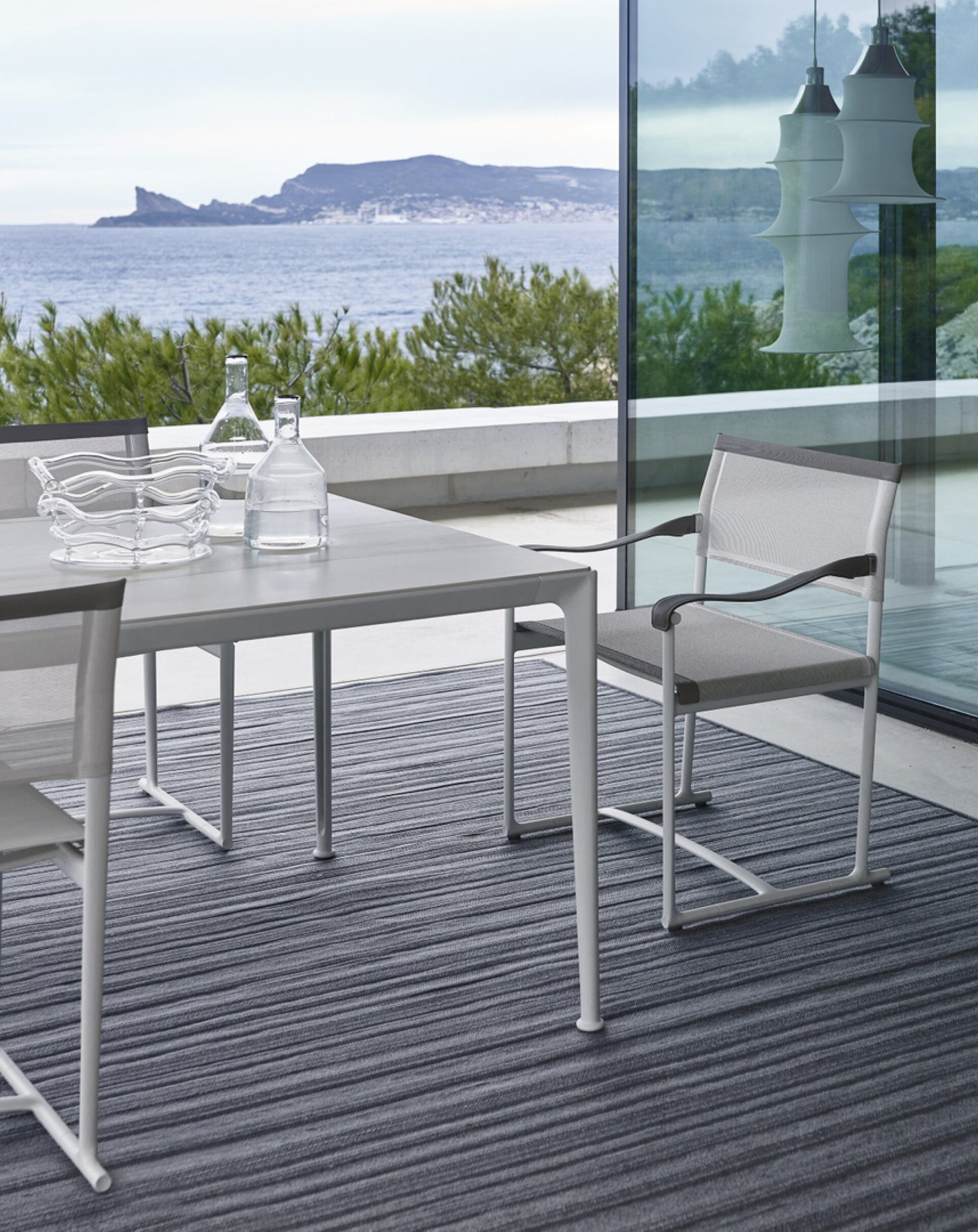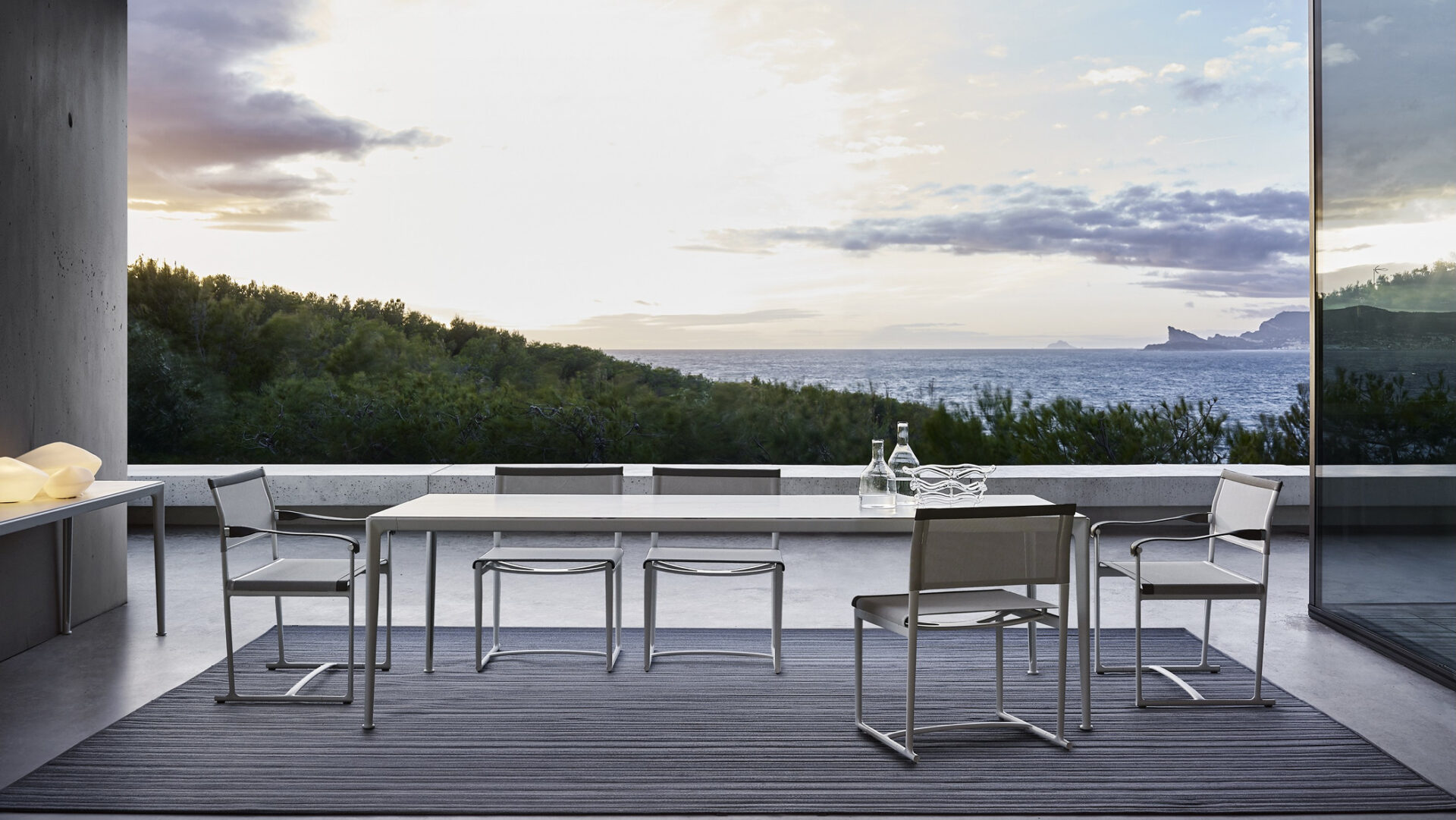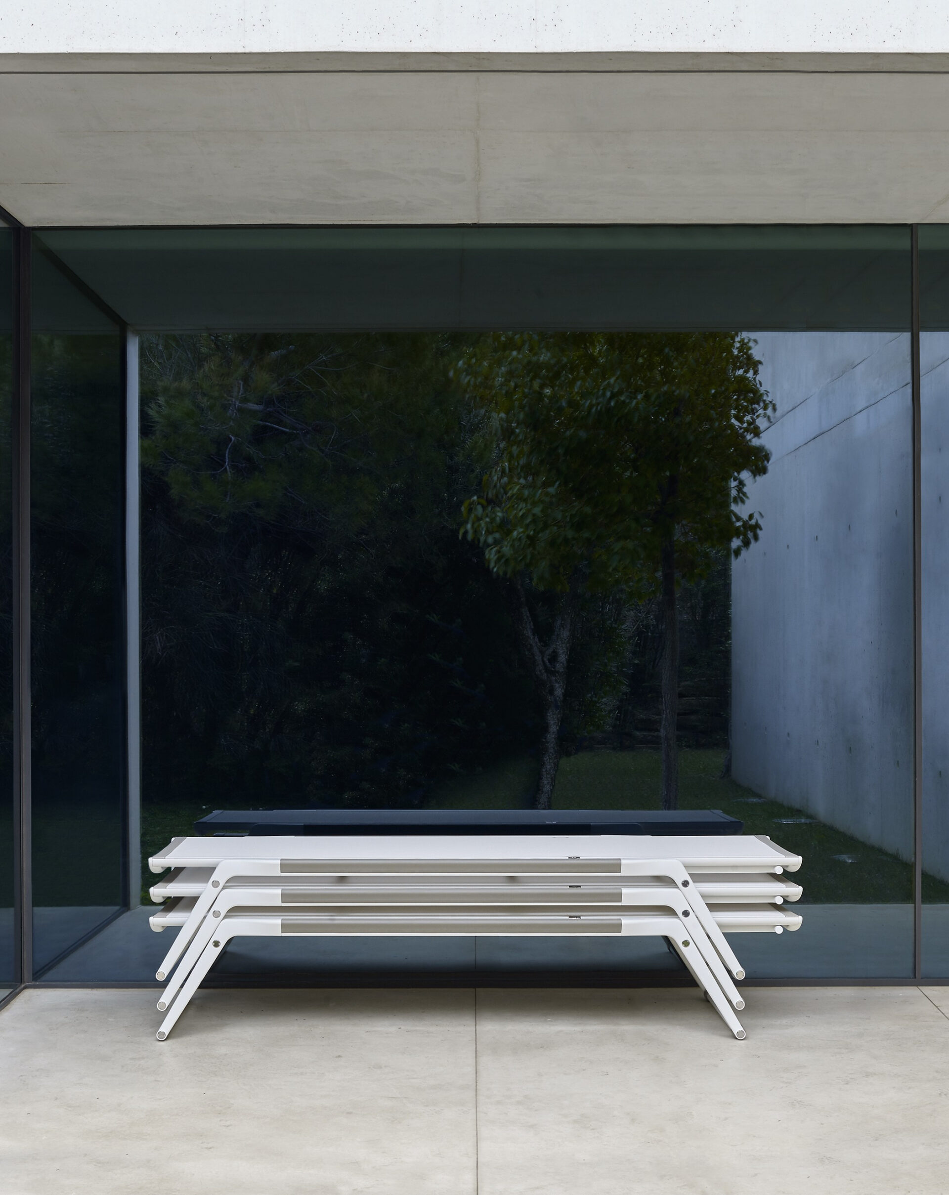 Outdoor furniture collection defined by its precise aluminium structure and integration of all components. The design pursues durability and formal lightness through the use of cast and extruded aluminium and technical fabrics, establishing a new standard for outdoor systems.