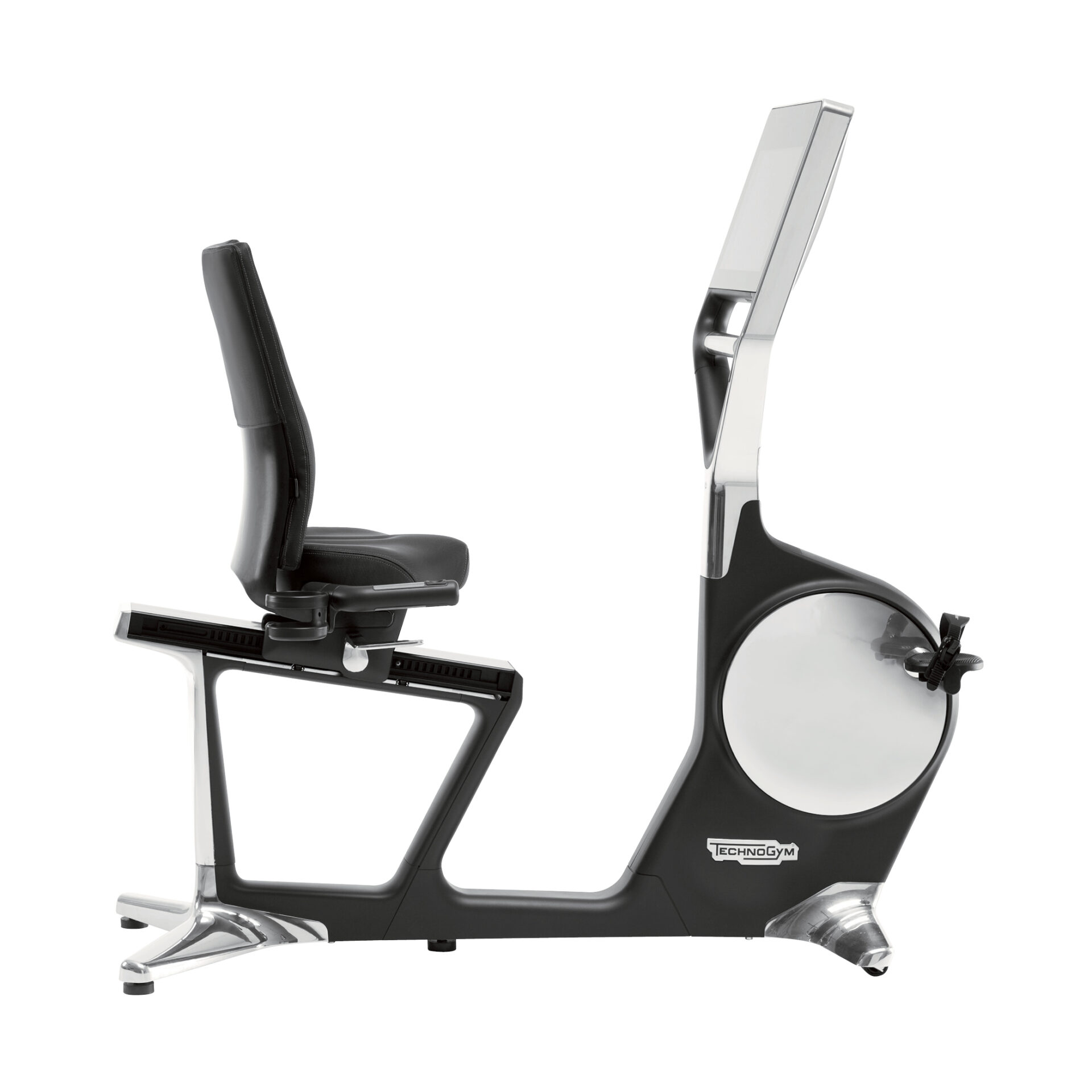 Recumbent exercise bike developed with Technogym as part of the Personal line. The die-cast aluminium frame and Vitra-designed ergonomic seat translate professional biomechanics and material precision into a form conceived for domestic interiors.