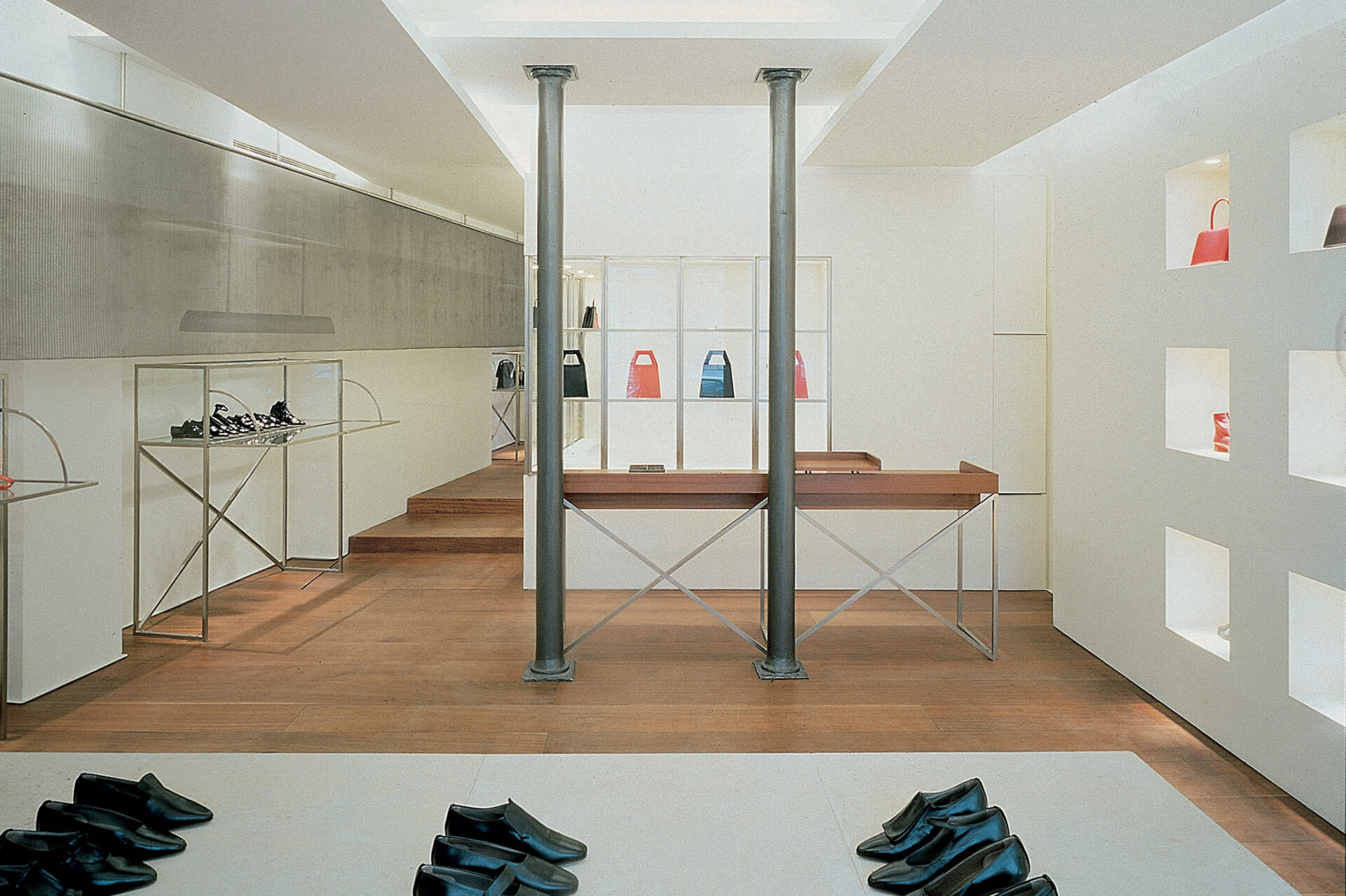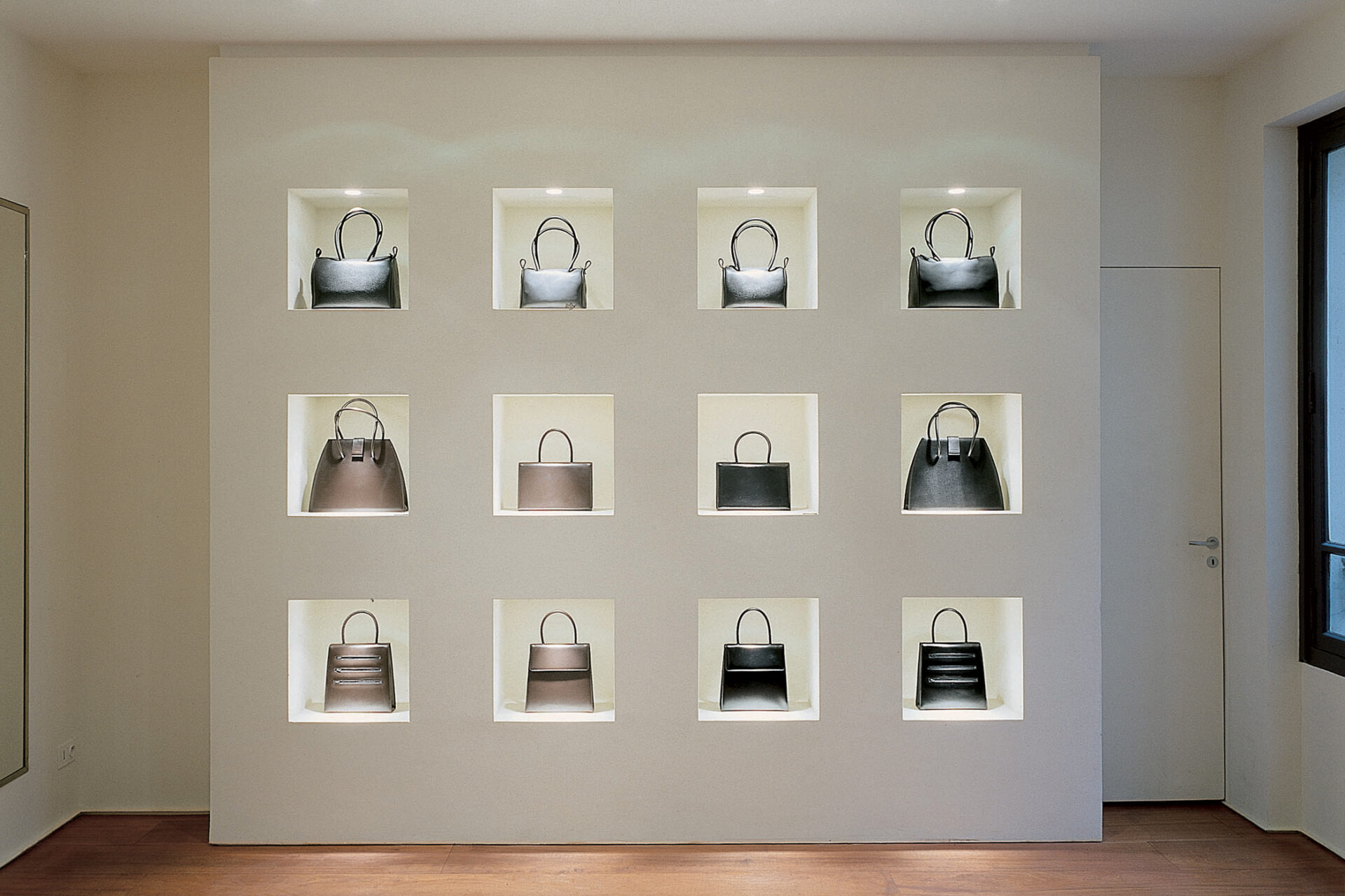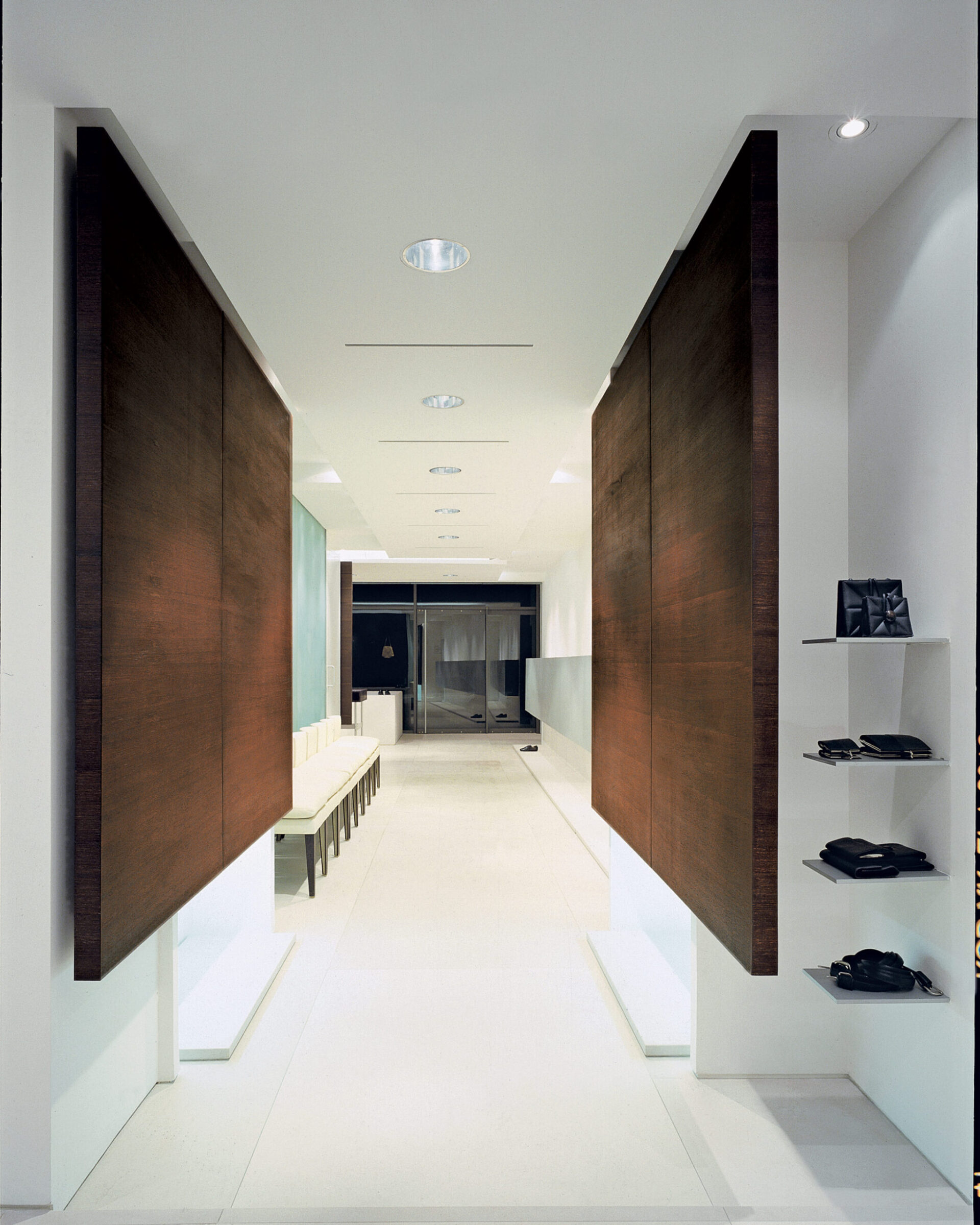 Retail projects for Santini across Milan, Paris, Florence and Düsseldorf develop a coherent boutique concept shaped by early twentieth-century references. Double-height spaces, custom display systems, dark wood boiserie and controlled lighting define interiors where atmosphere and product presentation are closely integrated.